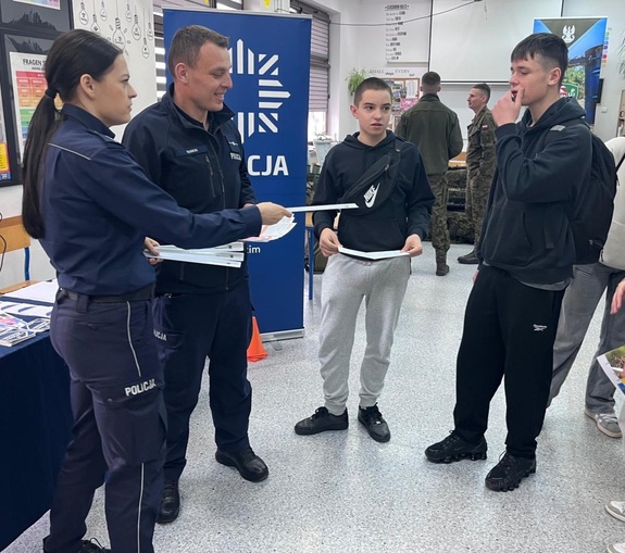 Policjanci tomaszowskiej komendy uczestniczyli w Dniach Otwartych Liceum Ogólnokształcącego im. St. Kostki Starowieyskiego w Łaszczowie. Na przygotowanym stanowisku, osobom zainteresowanym przybliżaliśmy specyfikę zawodu policjanta oraz proces rekrutacji do służby. Spotkanie było również promocją funkcjonującej w szkole klasy o profilu mundurowym.