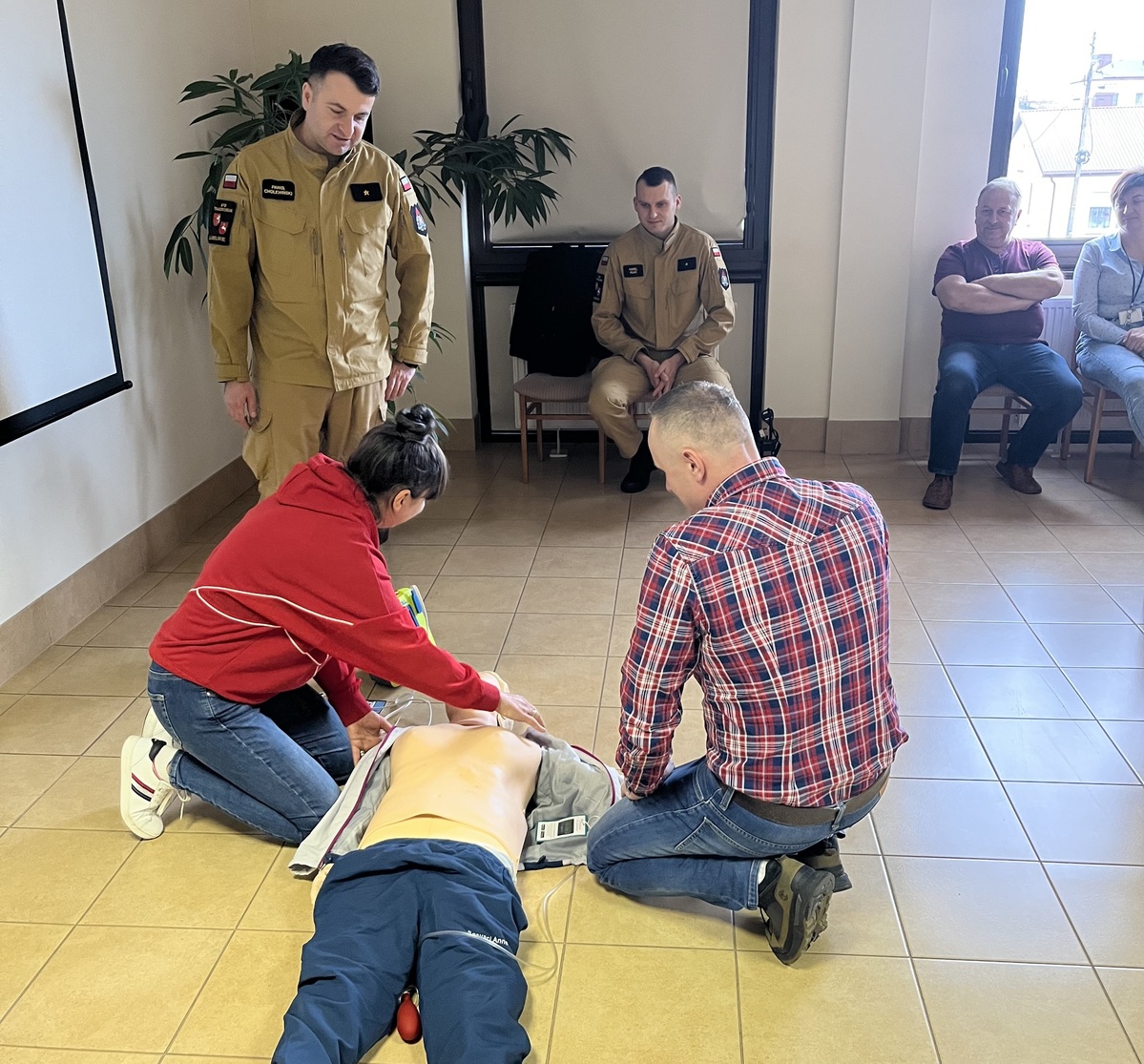 Wczoraj w ramach współpracy strażacy z Państwowej Straży Pożarnej w Tomaszowie Lubelskim przypominali policjantom i pracownikom cywilnym zasady udzielania pierwszej pomocy przedmedycznej oraz zasady udzielania pomocy przedmedycznej w kontekście podejmowania interwencji w stosunku do osób, których zachowanie wskazuje na możliwość zażycia środków odurzających lub występowania zaburzeń psychicznych. Strażacy przeprowadzili zajęcia teoretyczne i praktyczne z ratownictwa medycznego. Podczas spotkania omówiono wszystkie procedury ratownicze z zakresu udzielania kwalifikowanej pierwszej pomocy ze szczególnym uwzględnieniem zasad prowadzenia resuscytacji krążeniowo-oddechowej z użyciem automatycznego defibrylatora AED. Następnie strażacy pokazali w jaki sposób wykonuje się badanie urazowe oraz jak prawidłowo wykonać pozycję boczną. Wszystko po to by doskonalić nasze umiejętności, które są niezmiernie ważne i mogą nieść bezcenną pomoc ratując ludzkie życie