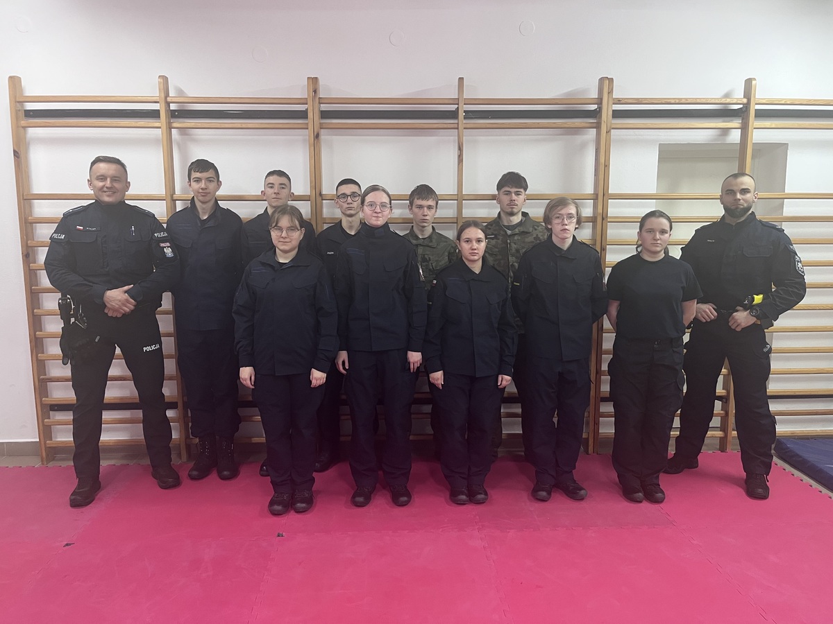 W środę w oddziale o profilu mundurowym w Liceum Ogólnokształcącym im. Stanisława Kostki Starowieyskiego w Łaszczowie mł. asp. Mateusz Girzyński wraz z sierż. Arkadiuszem Greszta z tomaszowskiej Komendy przeprowadzili zajęcia z techniki i taktyk interwencji. Spotkanie miało związek z realizacją podstawy programowej w ramach trójstronnego porozumienia pomiędzy Policją, Strażą Graniczną a Liceum w Łaszczowie.