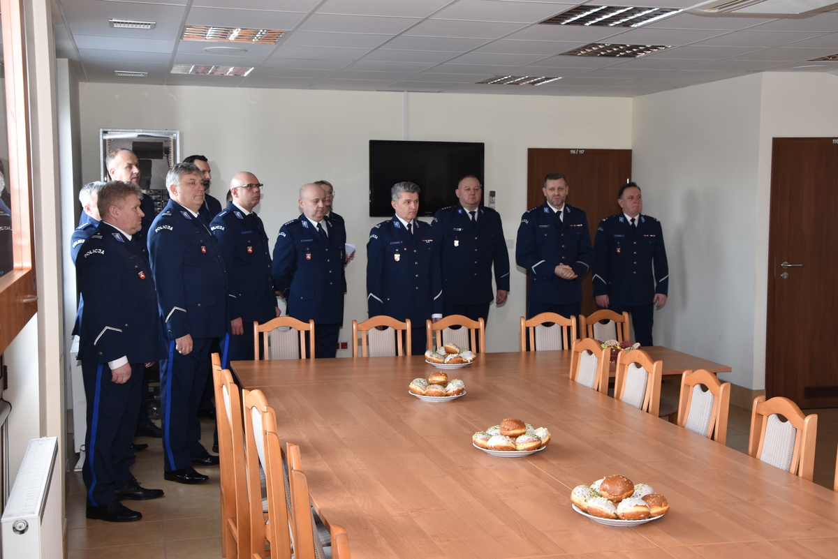 Na koniec Komendant insp. Mariusz Gajewski wspólnie z I Zastępcą nadkom. Bogdanem Kulasem i Przewodniczącym Związków Zawodowych Policji asp. szt. Krzysztofem Majdańskim wręczył wszystkim pracownikom pisemne podziękowania, życząc przy tym satysfakcji z wykonywanej pracy oraz wielu sukcesów i radości w życiu osobistym.
