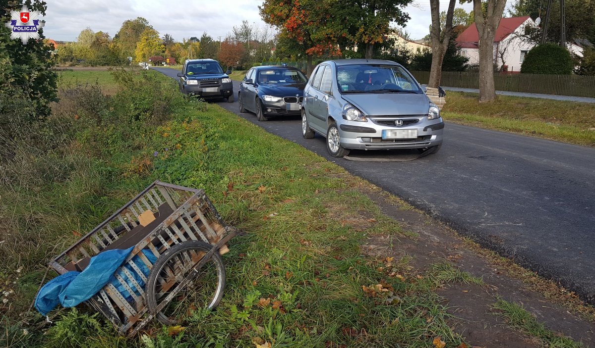 Do wypadku doszło dzisiaj w godzinach porannych. Dyżurny tomaszowskiej komendy otrzymał zgłoszenie o zdarzeniu drogowym z udziałem pieszego w m. Tarnawatka. Policjanci, którzy przybyli na miejsce ustalili, że 43-letnia kierująca pojazdem marki Honda potrąciła pieszego. Z jej relacji wynikało, że kiedy jechała od strony m. Tarnawatka w kierunku m. Werechanie niespodziewanie przed pojazdem zobaczyła pieszego, który prowadził wózek. Kierująca tłumaczyła, że nie zauważyła mężczyzny, ponieważ oślepiło ją słońce. 57-letni mieszkaniec gm. Tarnawatka z obrażeniami ciała został przewieziony do szpitala. Uczestników zdarzenia przebadano na zawartość alkoholu w wydychanym powietrzu. Oboje byli trzeźwi.